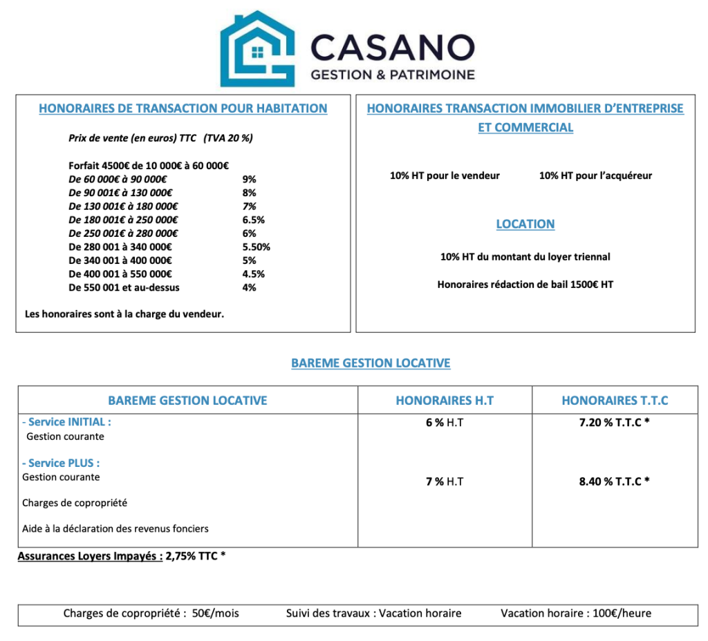 L’ensemble du contenu du site agencecasano.fr (textes, images, logos, graphismes) est la propriété exclusive d’ALBERT CASANO SASU, sauf mention contraire. Toute reproduction, représentation ou diffusion, en tout ou partie, du contenu de ce site est interdite sans autorisation préalable écrite.